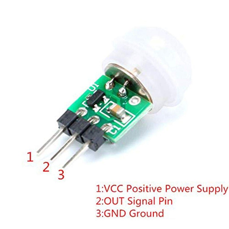 Description: AM312 body sensors modules: A passive body based on the digital intelligent infrared technology, Automatic control products. High sensitivity, high reliability. Widely used in various auto-sensing electrical equipment. Features: \- Immunity enhancement, internal use of digital signal processing, direct high-low output. \- Repeatable trigger: the sensor output high after, the delay period, If there is human activity in its sensing range, the output will remain high until the people left after the delay, It becomes low (i.e. Sensor module detects the human body every activity will be automatically extended a period of time delay, and to the last activity time as the starting point of the delay time). Specification: 1\. Working voltage: DC 2.7-12V 2\. Static power consumption: less than 0.1mA 3\. Delay time: 2 seconds 4\. The blocking time: 2 seconds 5\. Trigger: can be repeated 6\. Sensing range: ≤100 degree cone angle, 3-5 m; (required depending on the lens) 7\. Working temperature: -20 - + 60 ℃ 8\. PCB Dimensions: 10mm x 8mm 9\. Total size: Approx. 12mm x 25 mm 10\. Module Lens: Small lens Package Included: 5 x Mini IR Infrared Pyroelectric PIR Body Motion Human Sensor Detector Module 15 x 1Pin Dupont Wire Female to Female 15 x 1Pin Dupont Wire Female to Male