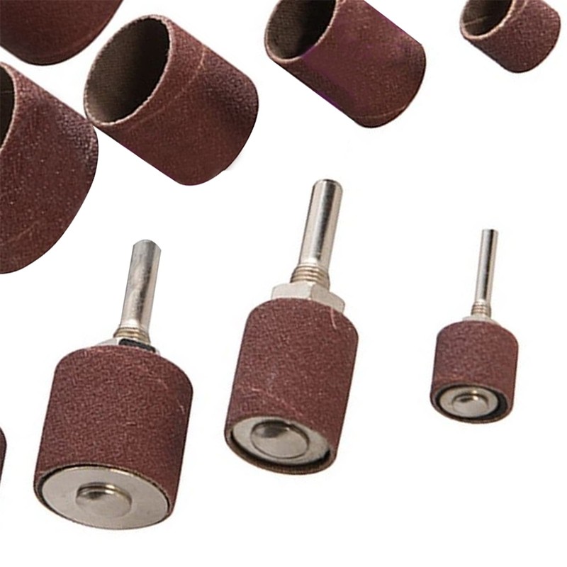 • SPECS: 4 x rubber drums: 12.70 mm / 1/2", 19.05 mm / 3/4", 25.40 mm / 1", 38.1 mm / 1-1/2" 16 x sanding sleeves:- 2 x 80 grit and 120 grit (12.70 mm / 1/2"); 2 x 80 grit and 120 grit (19.05 mm / 3/4"); 2 x 80 grit and 120 grit (25.40 mm / 1"); 2 x 80 grit and 120 grit (38.1 mm / 1-1/2")