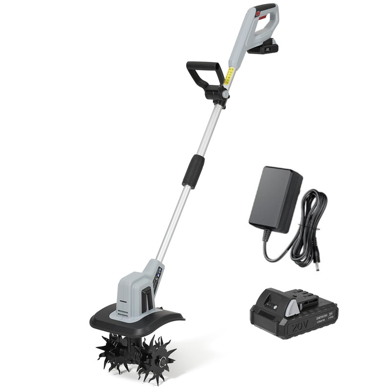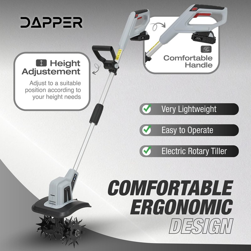 Dapper Supply 20V Cordless Tiller Cultivator, 360RPM Electric Garden Tiller with 2.0Ah Battery & Charger, 9" Tilling Width, 6.6" Depth, Ideal for Lawn, Garden Beds, and Soil Cultivation