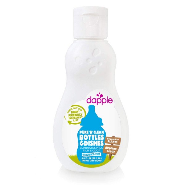 Dapple Travel-Size Dish Liquid is perfect for on-the-go cleaning of baby bottles, sippy cups, pacifiers and breastpump components Removes residue and odor left behind by breast milk and formula Convenient travel size for family trips with baby Specially sized to meet TSA restrictions Baby-safe formula Fragrance-free formula with no SLS, SLES, artificial fragrances, dyes, parabens, phthalates and 1,4-dioxane Made in USA