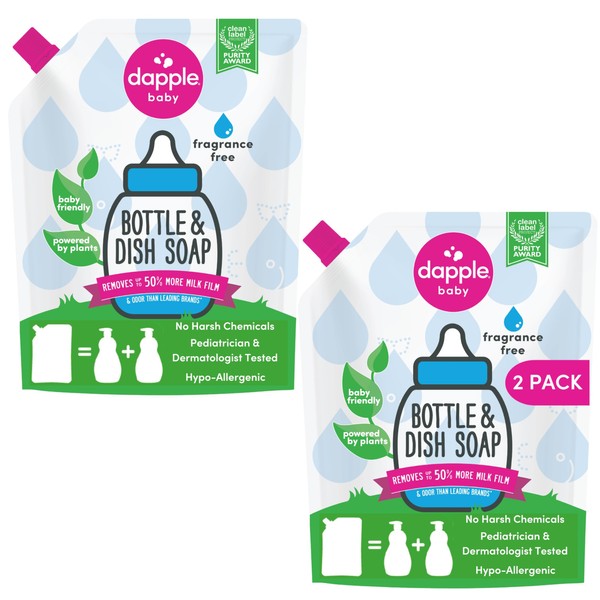 Independent tests prove that Dapple Baby Bottle & Dish Soap removes up to 50% more milk film and odor than other leading brands.* It is specifically formulated to remove the fats, proteins and carbohydrates left behind by breast milk and formula so it rinses cleaner, and uses baking soda to combat any odor. It does so much more than just clean bottles C use it on all your dishes, for babies, children and the rest of the family too. Made with plant-based ingredients and without harsh chemicals, Dapple Baby Bottle & Dish Soap received a best-in-class rating from the Clean Label Project for its commitment to clean and pure ingredients. It is hypoallergenic, pediatrician and dermatologist tested and baby-friendly.