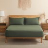 DAPU 100% French Linen Fitted Sheet Mattress Cover (1 Piece) with 16 Inch Deep Pocket, Pure Natural French Flax from Normandy, Ultra Soft, Breathable and Durable (Olive Green, Queen).