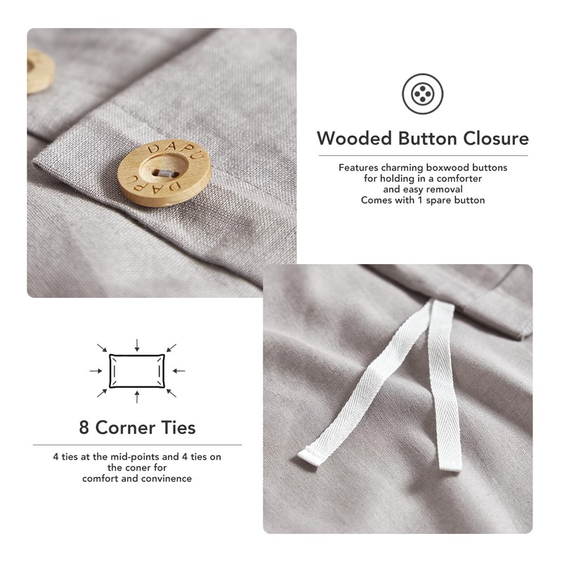 - Multi Duvet Ties- Cotton linen duvet cover stonewashed is sewn with 8 ties which keep your duvet firmly in place to ensure comfy nights. 8 ties available in all duvet cover by DAPU.