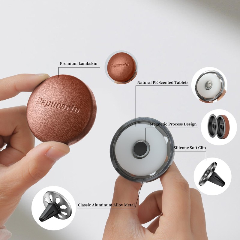 - Dapucarin car aromatherapy diffuser with meticulous craftsmanship, our unique leather design exudes a sense of luxury. Every detail is finely polished to add sophistication and taste to your car interior