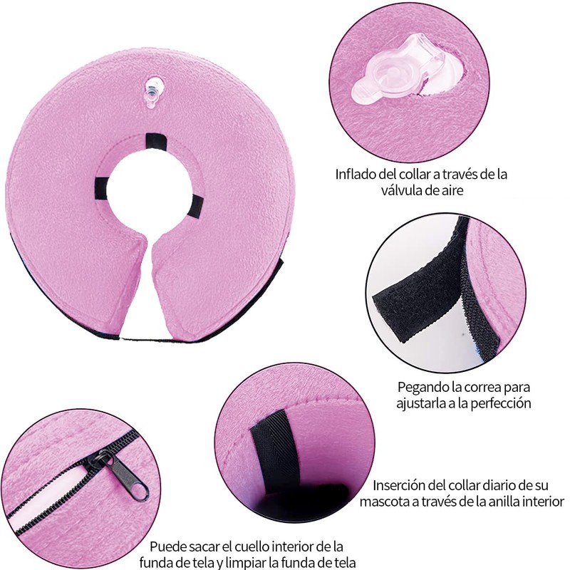 Collar de recuperación inflable, se puede desinflar y almacenar en un pequeño espacio cuando no lo utilices y hay una apertura de cremallera en un lado, puedes sacar la bolsa y lavar el paño exterior.