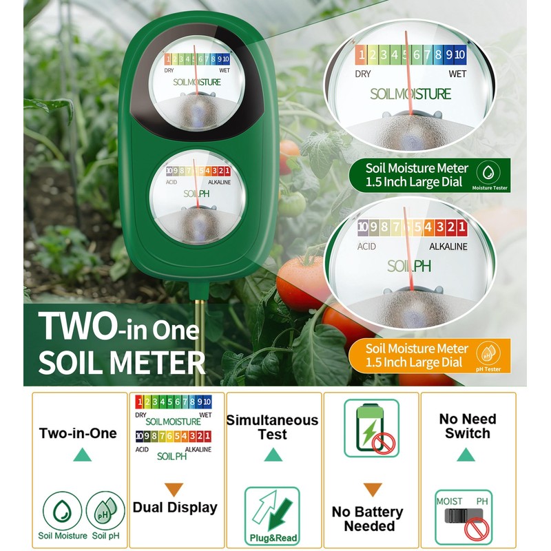 - 2-IN-1 SOIL TEST KIT: Soil PH Tester&Soil Moisture Meter helps gardeners make sensible decisions to optimal the plant‘s growth, increase effective watering rates, and no longer worry about overwatering. Enhance your gardening experience to the next level
