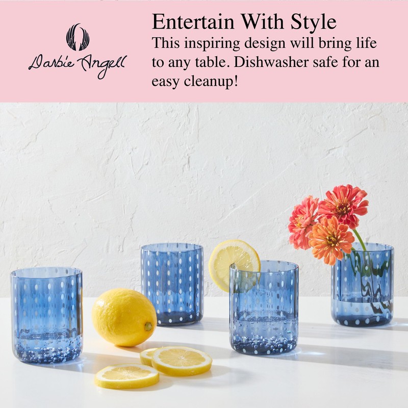 - ENTERTAIN IN STYLE: The Dappled Clouds double old-fashioned glasses feature vibrant colors and delicate dotted details that bring a lively look to tables, making them perfect for both everyday dinners and special occasions