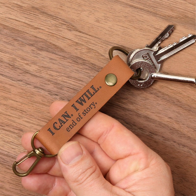 DAREhue Mens Keyring with Inspirational Quote - Genuine Leather (AWESOME, Toffee Brown)