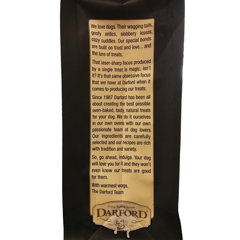 The grain free pumpkin recipe treats are packed full of yummy and easy-to- digest pumpkin; no wonder dogs love This flavor not just during the holiday season but any time of the year. At Darford, our commitment to quality has never wavered. We offer premium, healthy treats, providing you with a level of Trust you and your dog deserve. We have been baking premium natural dog treats since 1987 in a variety of tasty flavors that dogs love. We use only the best ingredients and we follow rigorous quality Control guidelines to ensure our treats are of the highest quality. Our grain free treats always have meat, fish, vegetables or cheese as the number one ingredient and they never contain any corn, soy or added salt. We never use meat by-products or any ingredients from China, but we do include Organic carrots and apples and locally sourced fruits and vegetables, making our treats rich in vitamins and antioxidants. Ingredients: pumpkin, Yellow peas, dried potatoes, dried sweet potatoes, canola oil (preserved with mixed tocopherols), cane Molasses, carrots, apples, cranberries, blueberries, annatto extract (color), rosemary extract nutritional profile: Crude protein: 9% Crude Fat: 8% Crude Fiber: 4% Moisture: 10% calorie Content: 3100 kcal/kg.