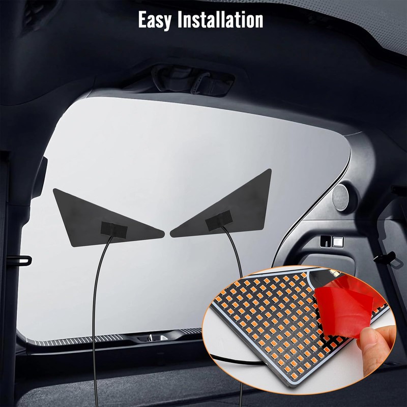 - Easy to Install: Use the double-sided tape in the package to stick it on the side of car eyes with the light beads, and then stick the eyes to the car window or windshield. The USB port is used to connect the power supply, and no need to install batteries.