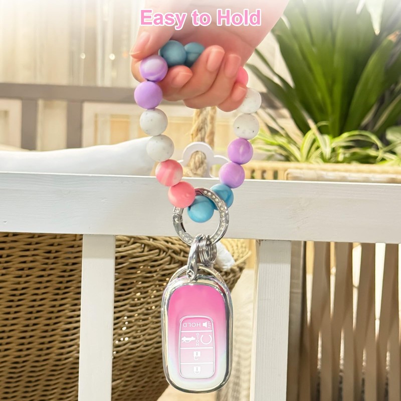 - Convenient to Carry: Car key case for Honda fits key perfectly and adds little to the overall size, so easily to put it into purse. Colorful silicone bead bracelet keychain makes it convenient to carry when outside and reduces the risk of dropping.