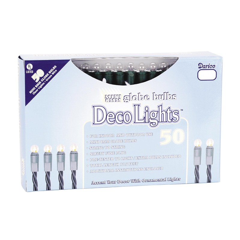 Darice LT505-1 Clear 50-Mini Globe Light Set with Green Cord