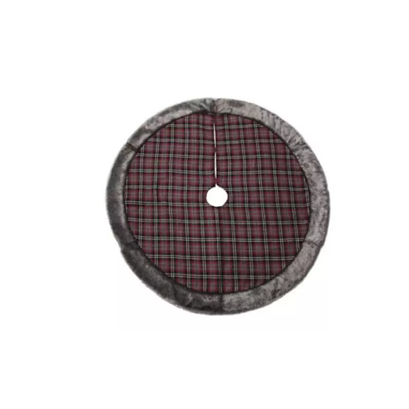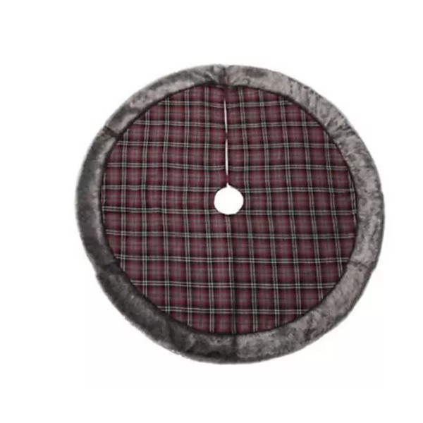 Darice Red & Gray Plaid Christmas Tree Skirt with Gray Faux Fur Trim 48"