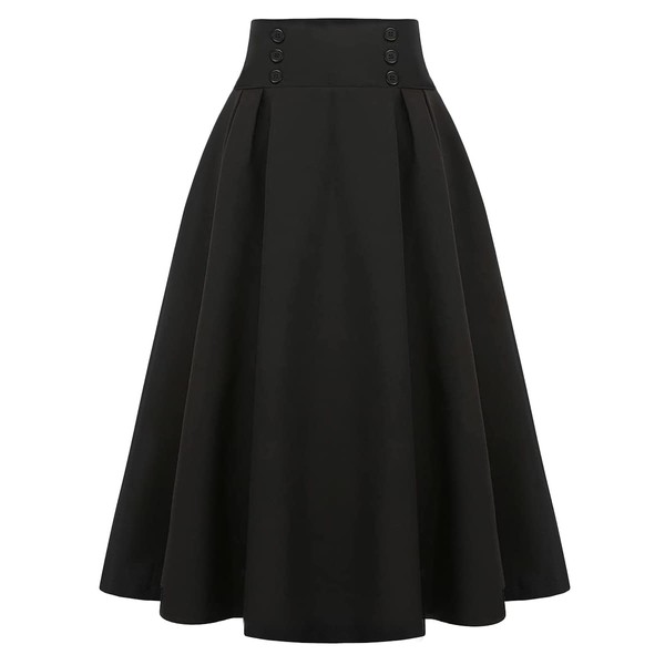 Dark Academia Clothing High Waisted Fall Winter Midi Black Pleated Skirts with Pockets (Black, X-Large)