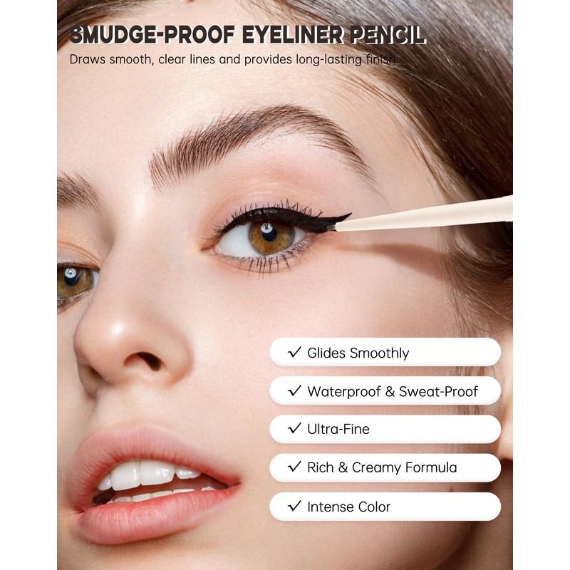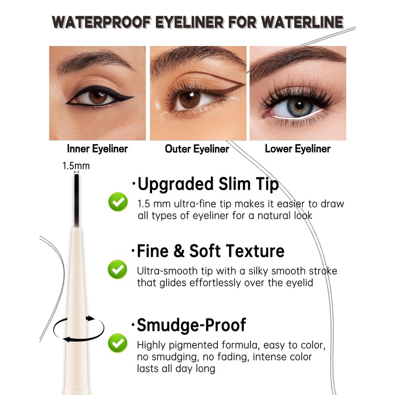 - Upgraded Slim Tip - Cream Eyeliner Pencil features an ultra-fine 1.5mm tip for easy application and coloring. Eyeliner Pencil has a slim, crayon-like, easy-to-apply retractable tube design, the ultra-smooth, high-precision tip makes it easier to line your eyes, with smooth, silky strokes and a soft, non-flaking finish, helping you draw a natural, three-dimensional look