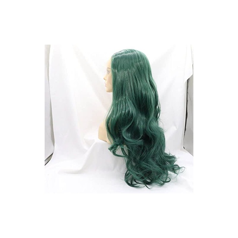 - 【Wig Features】24Inch Dark Green lace front wig, Pre-plucked natural hairline and baby hair, large front lace area can be middle or side parted. No Shedding, No Tangling, No Smel