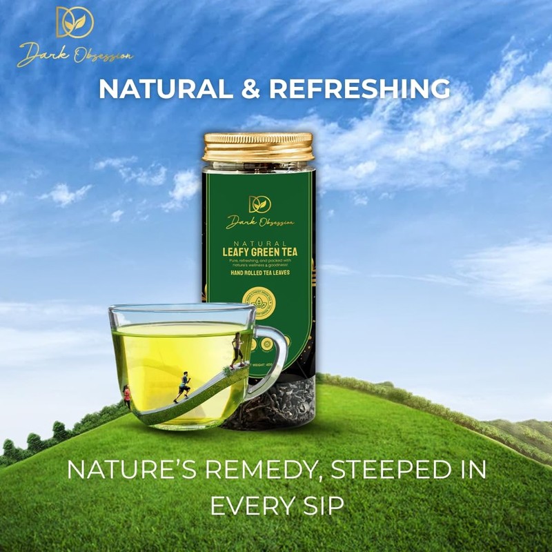 DARK OBSESSION, Assam Green Tea Leaves Pack of 2 (60+ Cups) | Hand-Rolled Sec...