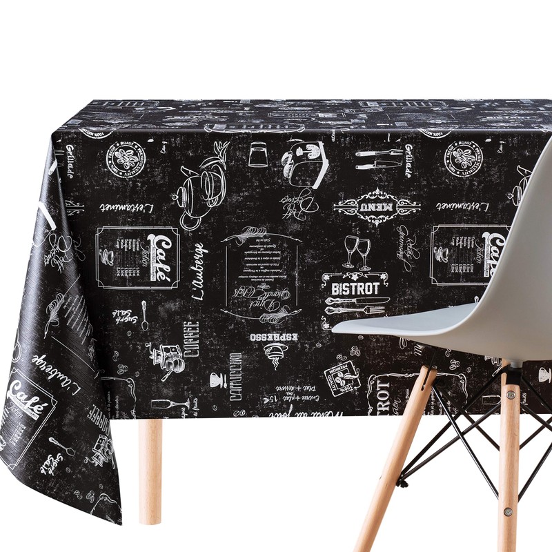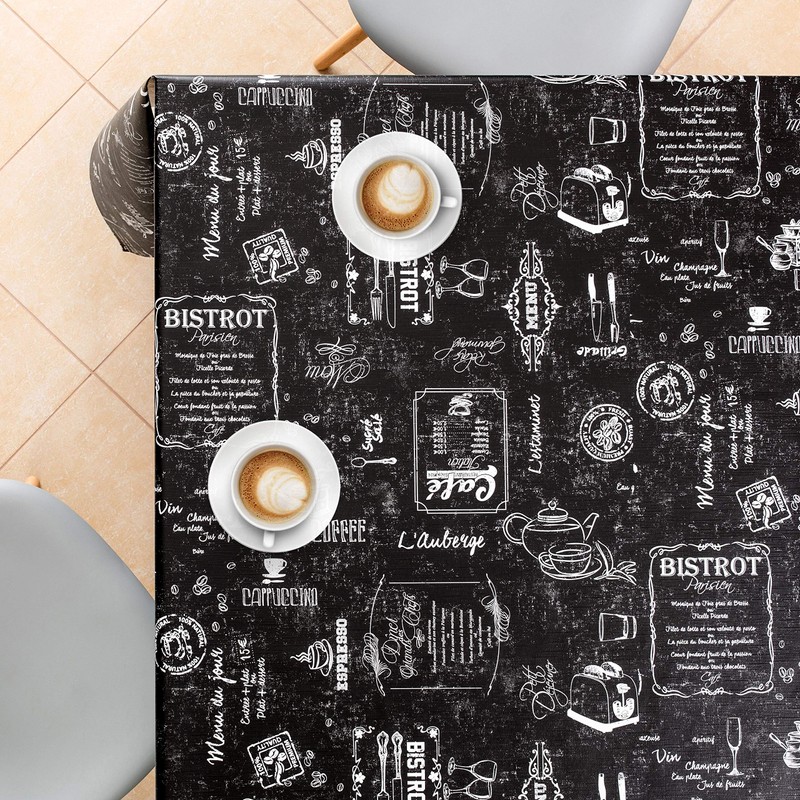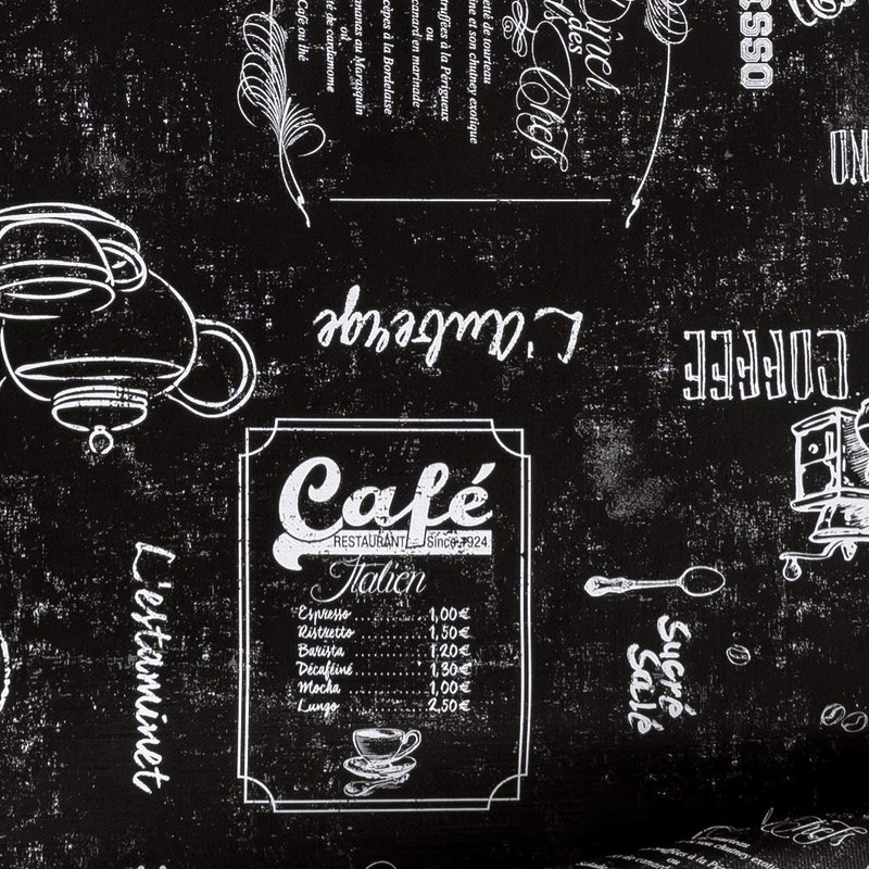 Dark Wipe Clean Pattern Tablecloth Coffee Shop Chalk Pattern - Rectangle 200x140cm | 78x55in For Rectangular Tables Up To 6 Seats - Heavy Weight Waterproof Oilcloth PVC Table Cloth Black | White