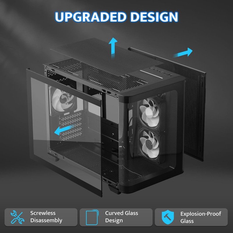 - [Innovative Curved Glass Views] The curved design offers a sleek, modern aesthetic that stands out in any setup. The R angle transition is natural and elegant, experience the awe-inspiring 270° panoramic tempered glass panel on this computer case. Note: 𝐑𝐆𝐁 𝐇𝐮𝐛 𝐂𝐨𝐧𝐭𝐫𝐨𝐥𝐥𝐞𝐫 𝐧𝐨𝐭 𝐢𝐧𝐜𝐥𝐮𝐝𝐞𝐝.