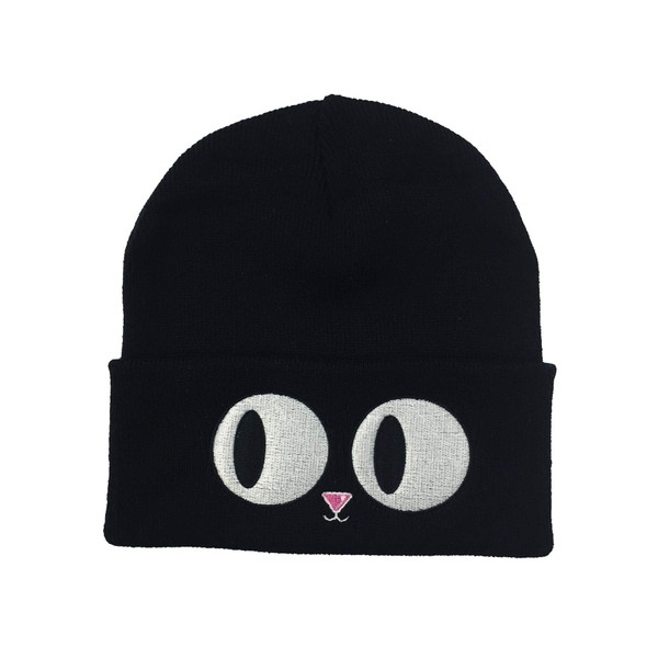Darkside Cat Eyes Beanie Hat Cute Kitten Eyes Winter Knitted Beanie Black