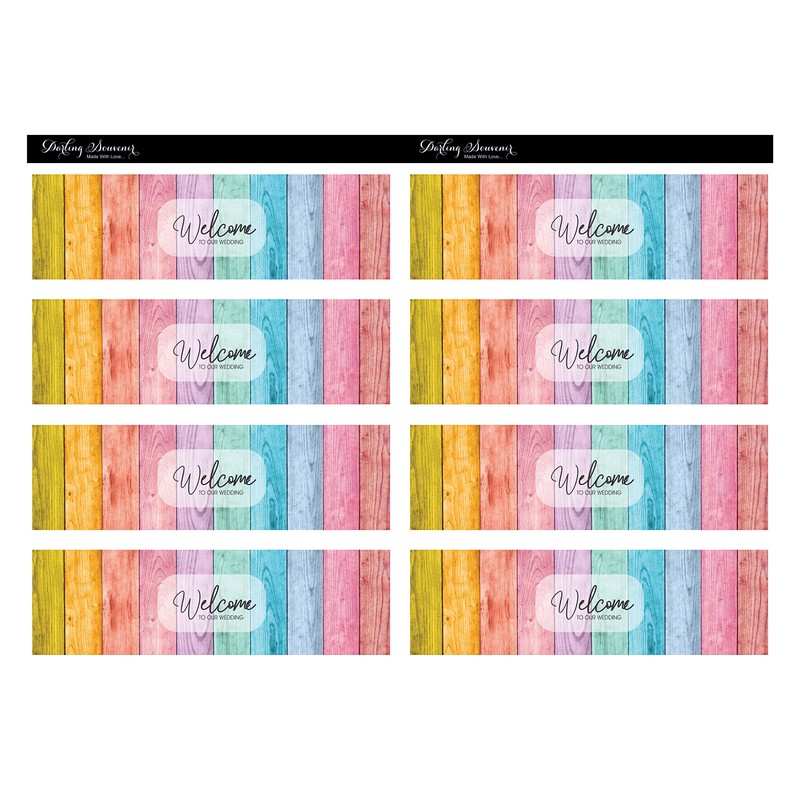 Darling Souvenir Water Bottle Labels, Colorful Rustic Wood Print - Easy to Use Party Supplies, Welcome to Our Wedding Stickers for Water Bottle Wedding Collection - Pack of 32