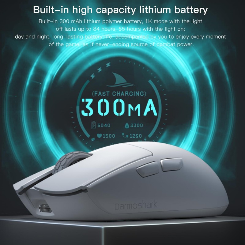 - PAW3950 Sensor:Darmoshark wireless gaming mouse adopts top 3950 sensor, up to 30000 DPI resolution, 650 IPS tracking speed, response speed can reach 1000/8000Hz, 50G acceleration, faster and more accurate than ordinary mouse, is committed to providing PC gamers the best Gaming experience