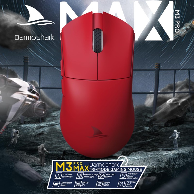 Darmoshark M3PROMAX Wireless Gaming Mouse,Tri-Mode 2.4G/USB-C/Bluetooth Mouse Up to 30000DPI,PAW3950 Optical Sensor Lightweight 54g,7 programmable Button,Computer Mouse for Laptop,PC,Linux,Mac(Red)