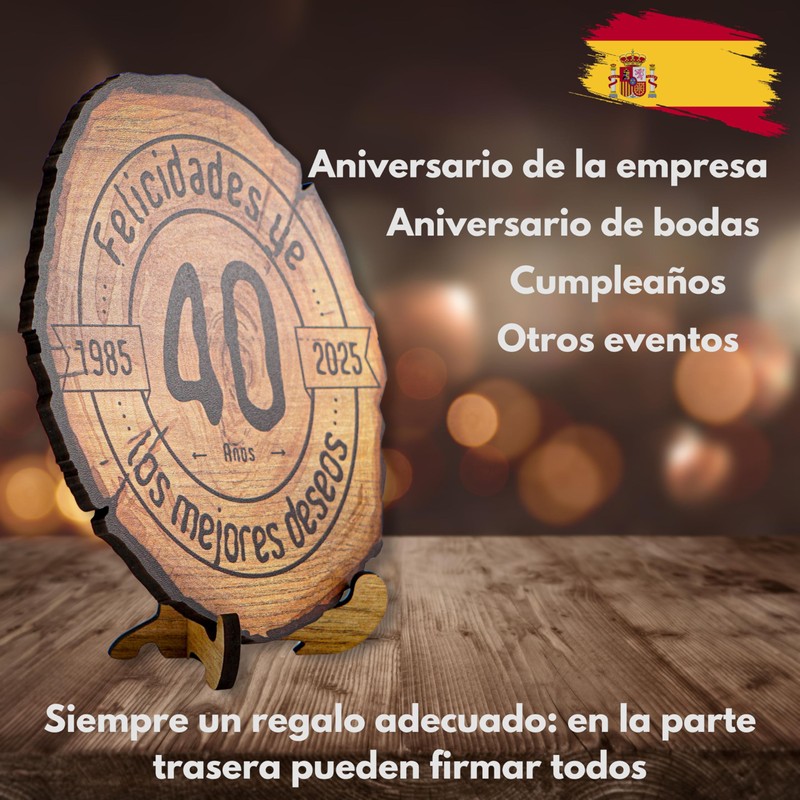 DARO Design - Wooden Disc - 40 Years - Size 20 cm - Gift for Anniversary, 40th Birthday, Anniversary - Congratulations