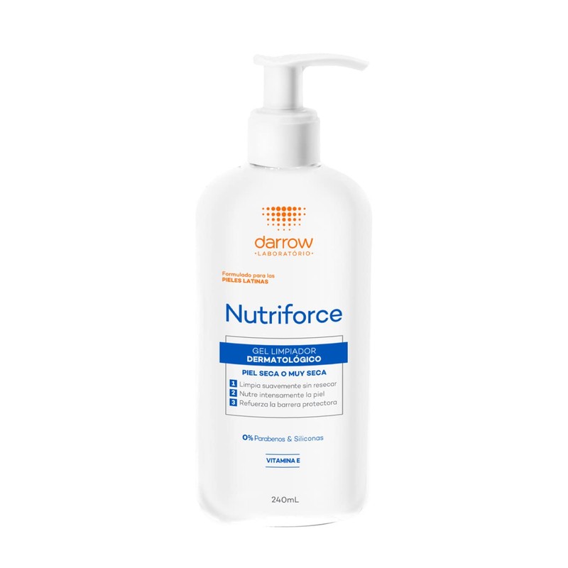 - "Nutriforce es la gama dermatológica especialista en la hidratación de la piel seca y con tendencia atópica. Darrow Nutriforce Gel de Ducha Limpiador estimula la vitalidad de la piel seca, ofreciendo una higiene hidratante que devuelve el confort y la suavidad de la piel. Descubre los beneficios de Darrow Nutriforce Gel limpiador con Vitamina E, es un cuidado hidratante hipoalergénico para pieles normales y muy secas, sin agredirla. Ingredientes: