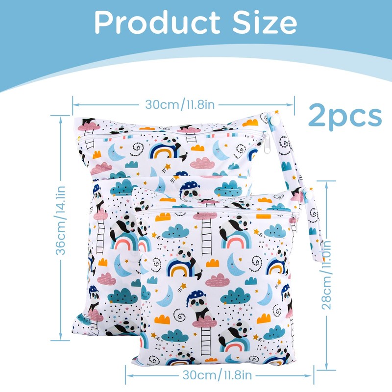 - Two sizes: the wetbag nursery is available in two different sizes. Large Size:36*30cm/14.1*11.8inch, can hold baby diapers, clothes, hats, etc.Small size:30*28cm The small bag can store baby bottles, paper towels, wet wipes and other small items.
