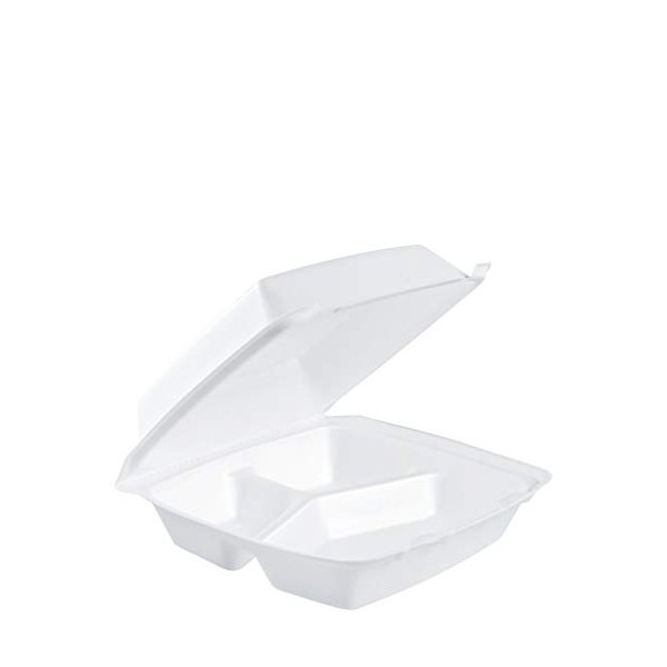 DART DART 85HT3R Med Perforated 3 Comp Foam Hinged Container, 8.5 Inches (Case of 200), original version,White