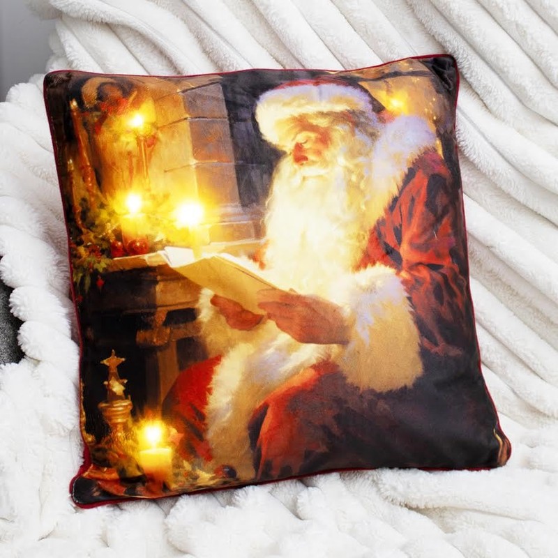 Darthome Reading Santa LED Cushion 45x45cm Red Square Light Up Christmas Filled Pillow B