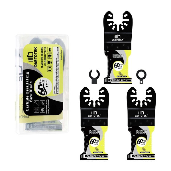 DARTOTEK Tungsten Carbide Oscillating Saw Blades 3 Pieces, Multitool Saw Blad...
