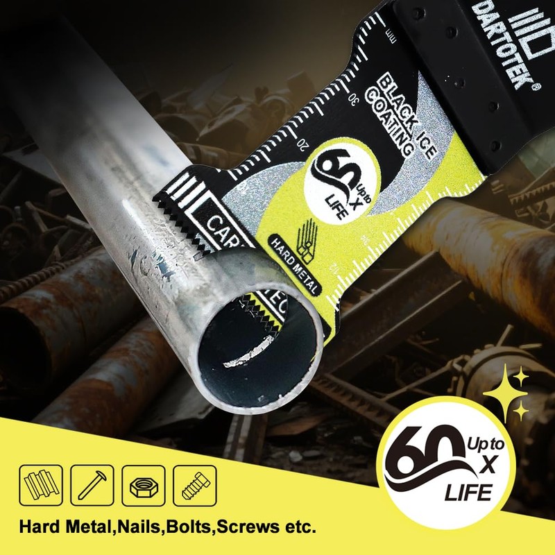 • Application: the oscillating saw blades are designed for cutting hard metal and wood. They are particularly suitable for cutting thick metal, screws, nails, bolts, rebar steel, copper pipes, etc. They offer significantly better performance than traditional multi-tool accessories