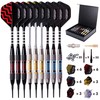 Turnart Darts Plastic Tip - Professional Soft Tip Darts Set for Electronic Dartboard 9 Pcs 18 Grams with 50 Extra Tips 9 Shafts 27 Flights Tool Kit Flight Protectors and Gift Darts Case (Tungsten)