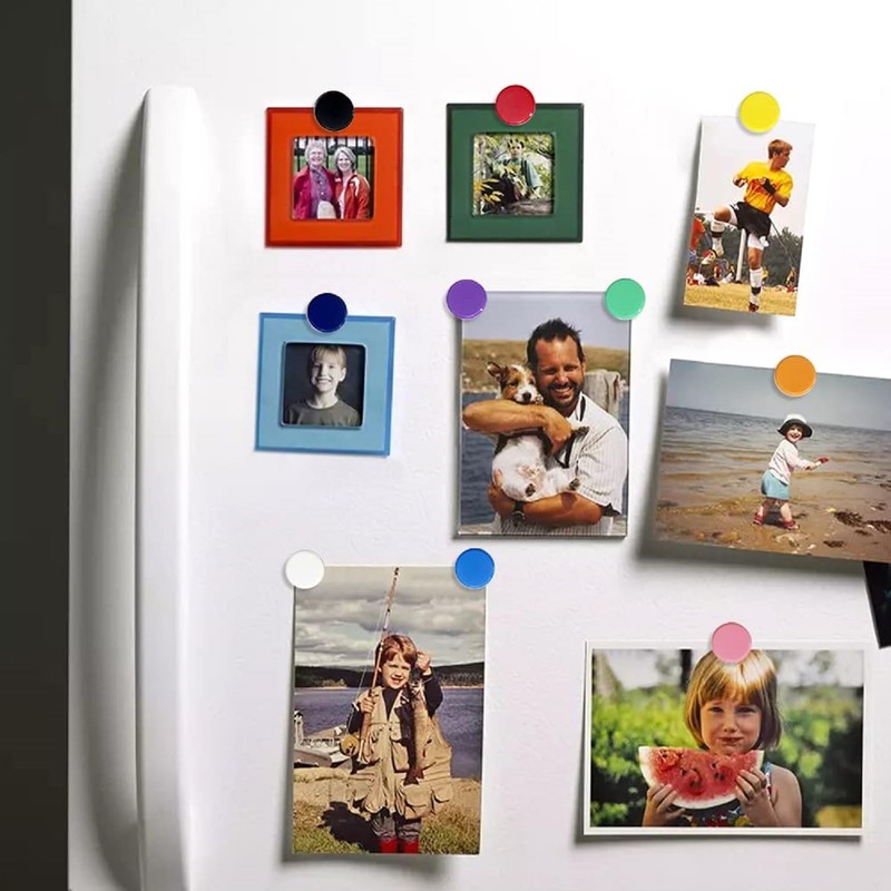 - [ Multiple Uses - Strong Magnets ] These cute magnets are small yet strong enough to hold photos, cards, memos, plans, receipts, notes, images, postcards, menus, documents, shopping lists, project presentations on the refrigerator door, whiteboard, locker, cabinet, chore board, cubicle, etc. Use them for notes and to-do lists on the fridge, whiteboard, or blackboard