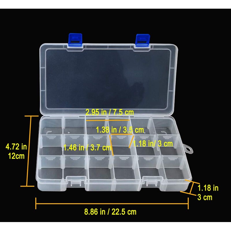 - 【Handy Size】Plastic storage box outer size: 8.86 × 4.72 × 1.18 in, each grid size: from max 4.72 × 2.95 × 1.18 in to min 1.46 × 1.38 × 1.18 in. SMALL and COMPACT compartments. ❉Please Pay attention to the size details before making your payment.