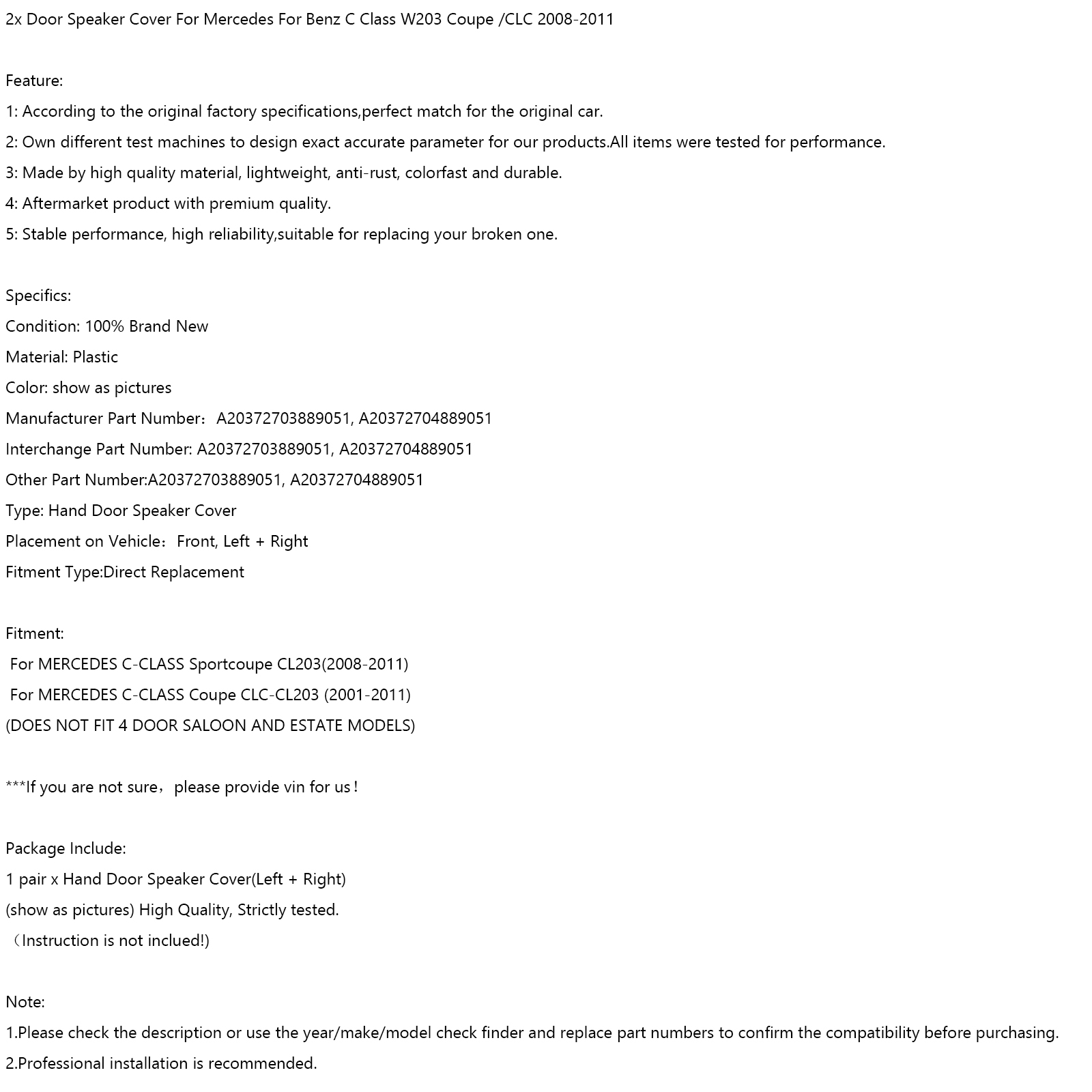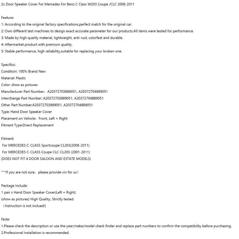 Darupsun 2x Door Speaker Cover For Mercedes For Benz C Class W203 Coupe /CLC 2008-2011