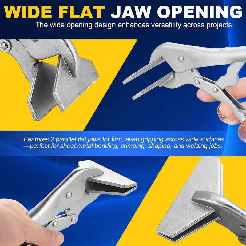 - Wide Flat Jaw Opening: Features 2 parallel flat jaws for firm, even gripping across wide surfaces—perfect for sheet metal bending, crimping, shaping, and welding jobs. The wide opening design enhances versatility across projects.