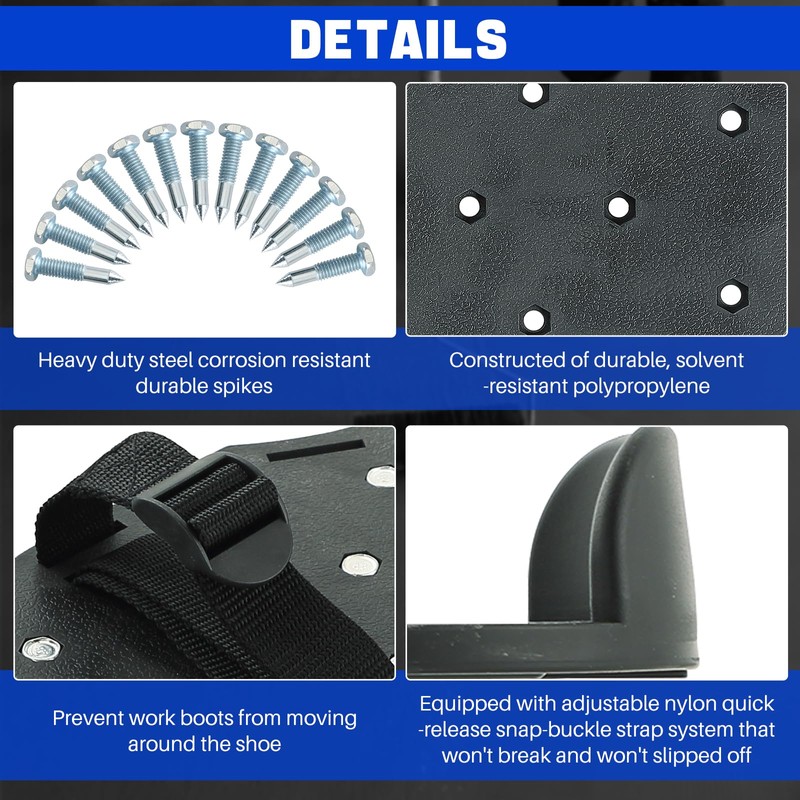 - Adjustable Nylon Lacing System: Every pair of spiked shoes is equipped with 4 adjustable nylon quick-release snap-buckle strap system that won't break and won't slipped off.