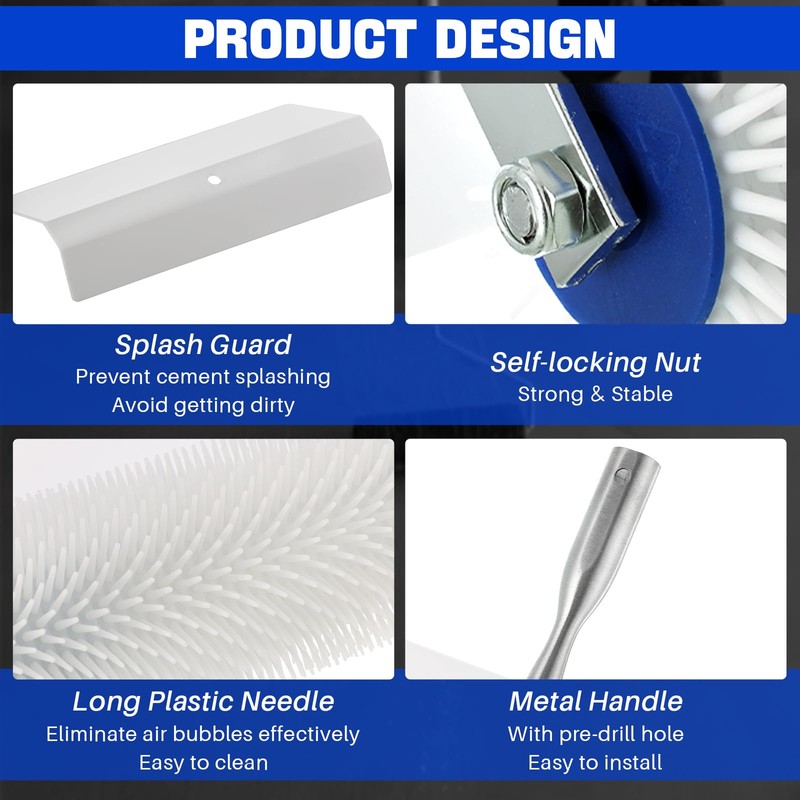 - Splash Guard Design: The defoaming roller brush with splash guard is used to prevent prevent cement splashing and avoid getting dirty.