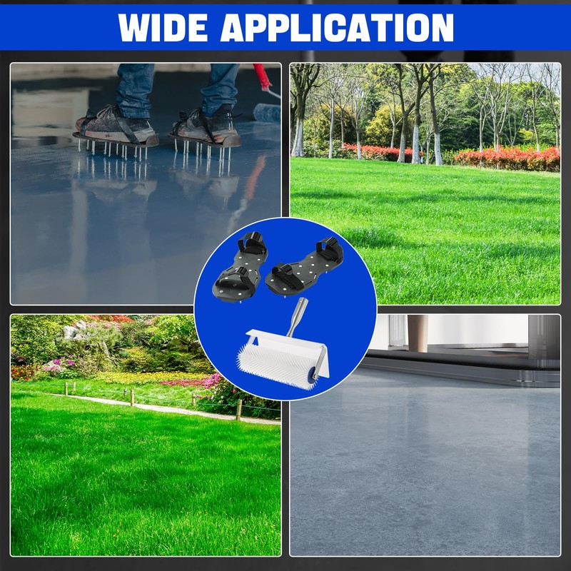 - Floor Leveling Roller: Our 10” spike roller has high-quality hard plastic spokes and metal handle that are very sturdy and durable. Leveling roller is used to move leveling around any area for comfort while spreading. Roller Width: 10”/250mm; Roller diameter: 3.5”/90mm; Needle length : 0.8”/21mm.