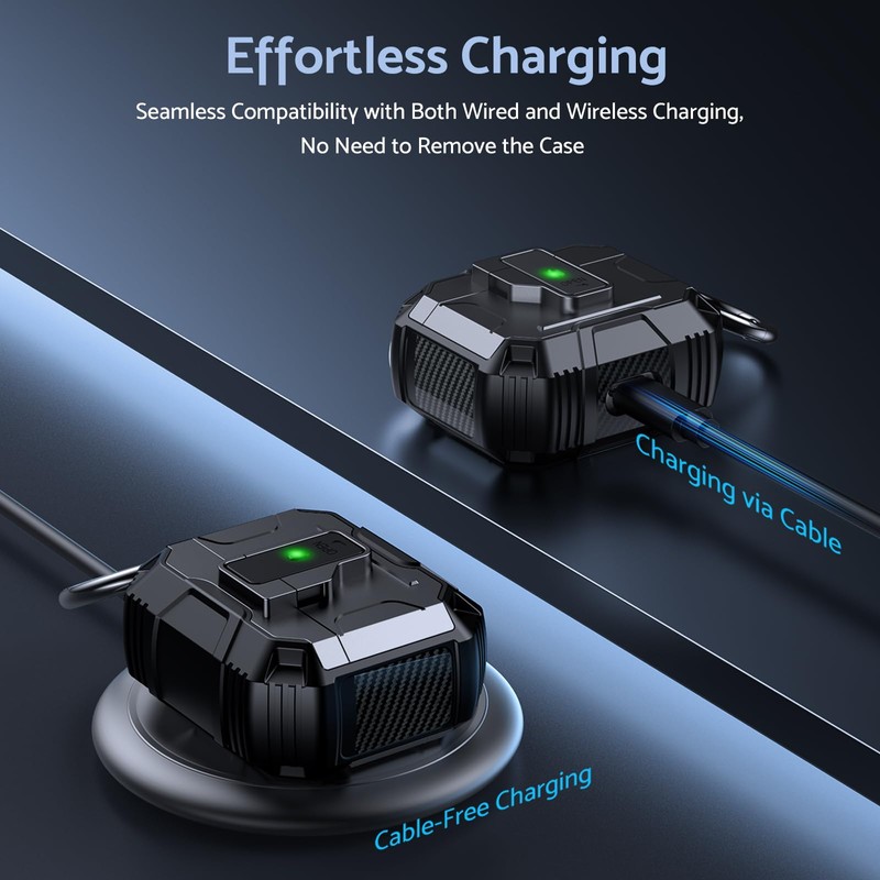 - 【Convenient Charging & Portability】The case supports both wired and wireless charging for your AirPods 4 case. The front LED remains visible to show the charging status. An included portable carabiner allows you to conveniently take your AirPods 4 case with you during outdoor activities like climbing, hiking, and travelling.