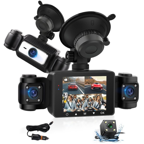 Dash Cam 4 Channel Front and Rear Inside Side, Four Way Dashcam for Car, 1080P, 360 Full Protection, Night Vision, Loop Recording, G-Sensor, Parking Aid, 24h Parking Meter, Rear View