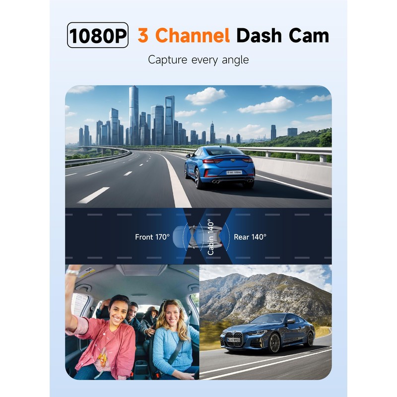 • Dash Cam: With a 170° front view, 140° cabin view, and 140° rear view, the triple dashcam ensures you never miss a moment and stay protected with 360° full-protection. The Screen made by IPS panel, It allows you to see a clear picture at any angle without any blurring, perfect choice for daily drivers and family trips.