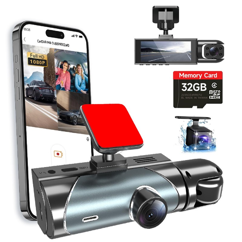 Dash Cam Front and Rear Inside, 3 Channel Dash Camera for Cars, 1080P Dashcam, Triple Car Camera, Wireless Dash Cam, Loop Recording, G-Sensor, WiFi & APP Control, Free 32GB Card (3.16” IPS Screen)