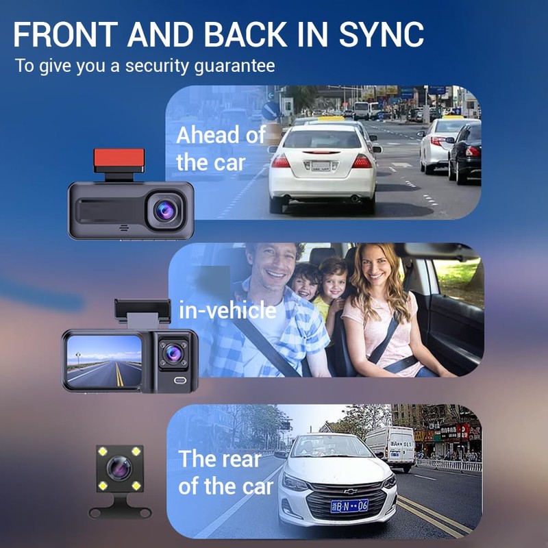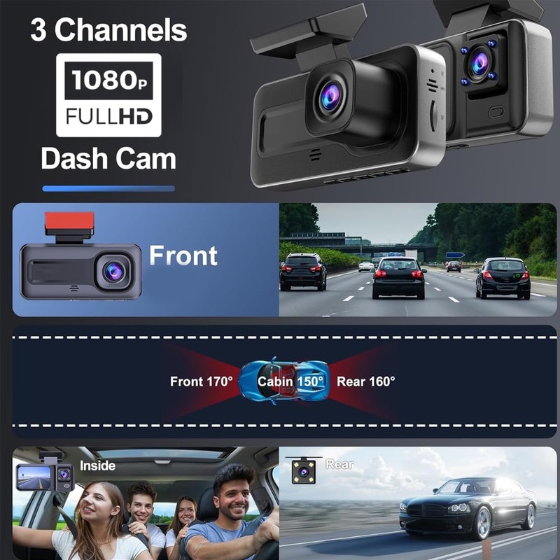 - Dash Cam for Cars Front and Rear:This 3 channel dash cam boasts super night vision and an infrared cabin light. Its f/2.0 aperture, WDR technology, and four infrared lights ensure exceptional color accuracy and clarity day or night.