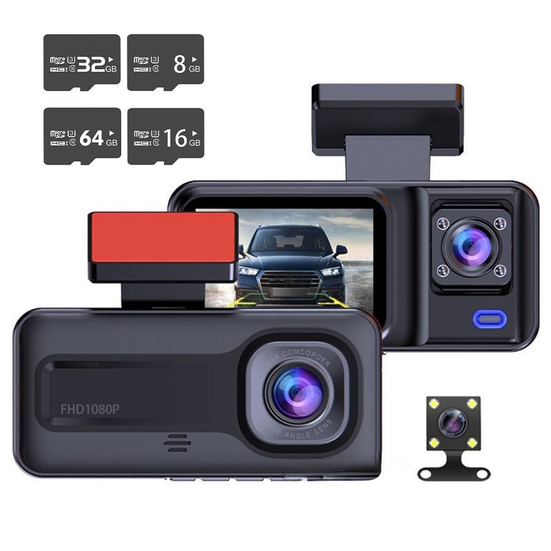 - 4K Full UHD 3 Channel Dash Cam:This 4K dash camera with 64GB SD card features advanced super night vision and an infrared cabin light, ensuring clear footage day or night.Capture every angle simultaneously with our advanced car dash cam, offering crystal-clear 1080P video of your vehicle's front, rear, and interior. Stay fully aware and protected on the road.