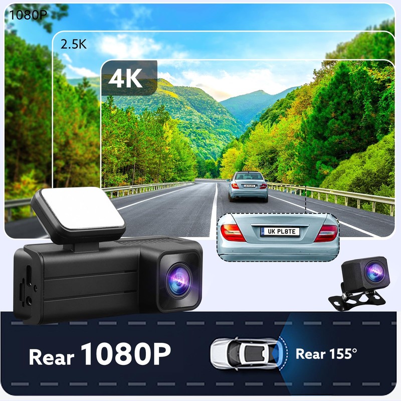- 【Crystal Clear 4K Ultra HD Recording】The dash cam is equipped with a front 170° wide-angle 6-glass camera, providing 4K high-definition video at a resolution of 3840*2160P/30fps; the rear 150° wide-angle camera provides clear and smooth video at a resolution of 1080P. No need to worry about missing important moments, making you feel confident on the road.