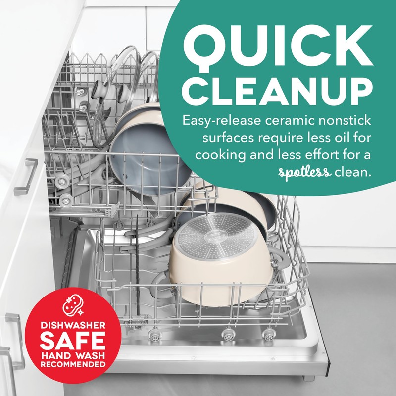 • NONSTICK COOKWARE SET – Ceramic frying pan set features two layers of Safe Ceramic Nonstick CleanCoating for a durable and long-lasting nonstick experience. It requires less oil for cooking and makes it easy to clean, too.